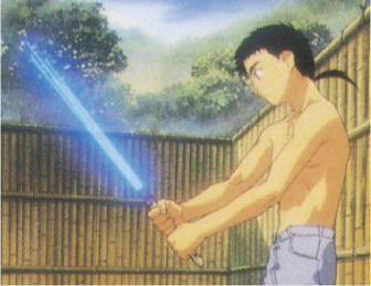 Tenchi Masaki Tenchi Masaki is a regular earth kid who lifes a somewhat average life. He lives in the mountains with his father and his grandfather. Tenchi's mother died when he was a child, but for reasons unclear in the U.S. version now airing on t.v. Also living with Tenchi are 5 beautiful alien women. I don't know from what race, but they all are pretty similar to humans, not to mention they all have a thing for Tenchi. The beautiful she-aliens are Ryoko, the most feared space pirate in the universe, Princess Ayeka of the Planet Juari, Sasami, Ayeka's sister, Mihoshi, an air head police detective...who knows how she got her job, and last but not least the Mad Genius Scientist "Little" Washu. During the U.S. series Tenchi Muyo, nothing important really happens. The series is based on day to day life as Tenchi fights off the 5 women(who knows why) and trys to keep on his toes while training with his grandfather. |